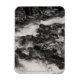 Ein Schwarz-Weiß-Foto des Flusses Ohanapechosh, das sich im Nationalpark des Berges Rainier befindet. Der Fluss grenzt an eine Felswand und an verstreute Steine. Das Wasser, das durch den Strom strömt, erzeugt einen Bogen zwischen den beiden Steingrenzen. Image Copyright ©2023 Kimberly J Tilley. zazzle.com/store/developingnature