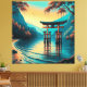 Dieses Kunstwerk, eingebettet zwischen ruhigen Gebirgsketten und der sanften Dämmerung, erhebt sich ein majestätisches Tor anmutig aus ruhigem, reflektierendem Wasser. Die heilige Szene wird von Herbstbäumen umrahmt, die goldenen Blätter flüstern in die Brise, während die Vögel friedlich durch den Pastellhimmel schweben. Dieses atemberaubende Kunstwerk japanischer inspirierter Kunst vereint die Harmonie zwischen Natur und spiritueller Symbolik und ruft ein tiefes Gefühl von Frieden, Introspektion und zeitloser Schönheit hervor.