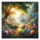 "Eine ruhige Darstellung eines üppigen Gartens, gebadet in sanftem Sonnenlicht. Die lebhaften Farben blühender Blume und zartem Blattwerk erwachen zum Leben und schaffen eine Oase der Ruhe, in der Sie die Schönheit der Natur genießen können. Dieses Stück erfasst das Wesen der friedlichen Einsamkeit und natürlichen Harmonie."
