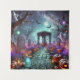 Jenseits der Arch-Tapestry unter dem wachsamen Glühen eines Vollmonds weht ein weingesäumter Bogengang durch einen mit flackernden Kerzen und geschnitzten Jack-o'-Laternen gesäumten Pflasterweg. Ätherische Geister treiben leise in der Nähe alter Grabsteine, ihre Präsenz wird durch schwimmende Orben in den Farben grün, blau und violett beleuchtet. Fledermäuse ragen durch den Dämmerhimmel, während lila Blüten und herbstliche Blätter einen verzaubernden Wandteppich entlang des Weges weben. Dieser spektrale Garten strahlt mit ruhiger Magie - wo jeder Schatten ein Geheimnis und jedes Licht wie eine Erinnerung wiedergeboren wird.