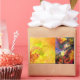 Farbenfrohe, skurrile und lebendige Aquarellmalerei in leuchtend roten, braunen, gelben, orangefarbenen, grünen Farben mit Gold und Silberfolie .