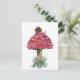 traditionelle Aquarell- und Tintenkunst eines großen, agarischen Pilzes oder eines Toadstools mit einer kleinen Schnecke, die als dekorative Postkarte darauf sitzt