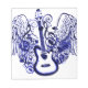 Blau-schwarze Gitarre mit Flügeln, Musiknoten und Herzen, Musik hebt den Geist auf eine Ebene der Freude. Lass Musik Live.