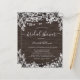 Cette invitation en bois rustique Budget Douche nuptiale comporte des lumières à cordes blanches, dentelle blanche motif floral sur le fond en bois foncé. L'envers de cette invitation est en bois blanc motif floral. Personnalisez-le et profitez-en. Veuillez noter que les enveloppes ne sont PAS incluses dans cette conception. Si vous avez besoin d'enveloppes, veuillez consulter notre collection ou les acheter séparément du marché.