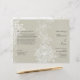 Grafische Blume in Weiß gegen eine weiche Taupe umrissen eine schöne Aussage auf diesem Hochzeitsprogramm Flyer. Ähnliche Blume werden als Wasserzeichen auf der Rückseite wiederholt. Ein sentimentales Aussehen für einen besonderen Tag. Erhältlich in alternativen Farben mit passenden Produkten.