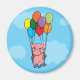 Mit einer digitalen Illustration des rosa Schweins mit einem Haufen bunter Ballons, um hoch in den wolkig blauen Himmel zu fliegen.