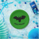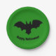 Flying bat on green paper plate. Happy Halloween!