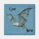 Das ist ein Vintage-Bild eines blauen fliegenden Fledermaus. Es hat ein 3D-Aussehen und ist Set vor einem Hintergrund von verschiedenen Blues. Der Text lautet: Ich Liebe Fledermäuse! Sehen Sie in meinem Shop Art by MAR nach, um Produkte mit diesem Design zu kombinieren.