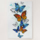 Fliegender, heller, blauer Schmetterlingsmorpho und orangefarbener Monarchschmetterling auf weißem Hintergrund. Morpho. Monarchfalter. Design mit Schmetterlingen.