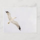 Ein subtiles Bild mit einem Möwe, der über dem Kopf in einem ruhigen Himmel fliegt.