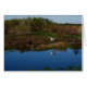 Großer Weißer Heron, der über einen stillen Teich fliegt. reflektiert