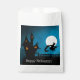 eine Hexe, die auf ihrem Besenstiel vorbei am Vollmond fliegt, mit einem dunklen Haus im Hintergrund und einer Katze auf dem Zaun 100% Anpassung. Klicken Sie auf die Schaltfläche CUSTOMIZE, um einen der Schriftart oder Grafiken hinzuzufügen, zu verschieben, zu löschen, zu verändern oder zu verändern.