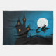 eine Hexe, die auf ihrem Besenstiel vorbei am Vollmond fliegt, mit einem dunklen Haus im Hintergrund und einer Katze auf dem Zaun 100% Anpassung. Klicken Sie auf die Schaltfläche CUSTOMIZE, um einen der Schriftart oder Grafiken hinzuzufügen, zu verschieben, zu löschen, zu verändern oder zu verändern.