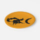 Flying Hexe-Silhouette auf orangefarbenem Hintergrund.