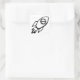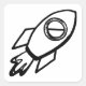 Schwarz-Weiß-Skizze einer nach oben fliegenden Rakete mit Feuer am Ende.