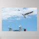 Flying Sitting Seagulls Birds Blue Sky Poster
