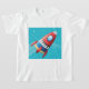 Träumen vom Überfliegen durch den Weltraum in einem Raumschiff. Nun, dieses Design wird diesen Traum erfüllen. Es ist von einem bunten Raumschiff, das durch den Weltraum zieht. Die Rakete ist mehrfarbig und hat einen Dampfweg auf der Rückseite. Es ist Set vor einem blauen Hintergrund. Dieses fliegende Raumschiff-Design sieht auf diesem Girl-T - Shirt großartig aus. Perfekt für sich selbst oder als Geschenk