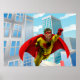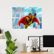Flying Superhero Comic Style Red and Yellow Held Poster