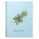 Die abenteuerliche Schildkröte mit einem Raketentapp und einer Luftkissenbrille fliegt mit einem glücklichen Grinsen.