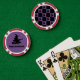 Fly away with these hand drawn witches to your spooky celebration! Side 1: Black witches on a black and purple checkered pattern. Side 2: Black witch on purple, Happy Halloween!