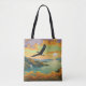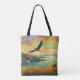 Eine Gänsefliegende Zuhause, über einem Fjord, wie die Sonne Sets in der Ferne schafft eine schöne und nostalgische tote Tasche.