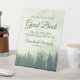 Dieses schöne Schild lädt Ihre Hochzeitsgäste ein, Ihr Gästebuch zu unterschreiben. Das Hotel bietet ein rustikales und dennoch elegantes Design mit einer Berglandschaft von grünen Pinien, die von Nebel und Nebel umgeben ist. Es gibt Platz für die Namen des Paares sowie für das Hochzeitstag. Ideal für eine Zeremonie im Freien oder im Wald.