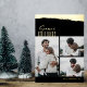 This simple, yet elegant multi-photo Christmas card is adorned with a bold, foil-stamped brushstroke design, and a delicate script font holiday greeting. The customer's name appears at the bottom of the card, and is stamped in foil as well. There is space on the back of the card for a longer holiday message.