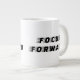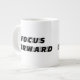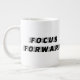 Diese große Kaffee-Tasse trägt ein Design mit einer motivierend Botschaft, sich nach vorne zu konzentrieren, um die Zukunft richtig planen zu können, zum Beispiel exam[le. Der Text ist schwarz, aber die Farbe kann angepasst werden.