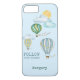 Eine wunderschöne Aquarellbild mit 3 Heißluftballons in verschiedenen Blautönen, aquamarin und grün, die anmutig in der Luft schweben. Das Zitat "Folgen Sie Ihren Träumen" wird in einem fett gedruckten Schriftart gehalten. Fügen Sie Ihren Namen zum iPhone Gehäuse für Personalisierung hinzu.