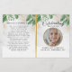 Customisez ce programme funéraire moderne et élégant avec votre propre photo et texte pour créer un hommage spécial à votre bien-aimé. Un programme "In Loving Memory" avec un feuillage d'eucalyptus avec des feuilles d'accent or. programme commémoratif. Sur la couverture, vous trouverez une photo de votre être aimé, son nom, ses dates, le lieu du mémorial et la date de l'événement. A l'intérieur est une nécrologie et une commande de service, et au fond est une note de remerciement et le lieu de l'Our store offre également d'autres modèles qui offrent une verdure botanique avec design rose et feuille et des accents de parties scintillant/or et le feuillage Eucalyptus pour répondre à toutes les exigences.