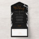 Une faire-part de mariage tout en un orange, noir et blanc. Cette invitation est décorée de feuilles blancs et mêle design minimaliste et dramatique. Il comprend l'invitation ainsi qu'une carte RSVP déchirante. Ajoutez simplement vos informations, ajoutez cet invitation à votre panier et profitez de votre beau mariage. Foliage Orange Mariage noir tout en une invitation Conception de vacances | ©Melissa Patton - Concepteur/Illustrateur