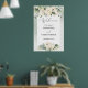 Affiche de bienvenue mariage grand format en style boho avec feuillage verdoyant avec des fleurs d'eucalyptus et de roses blanches rehaussées d'éclats d'or. Voir la collection complète avec ce design.