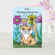 Niedliche handgezeichnete volkskundliche Kunsthandwerkskatze, Blume, Geschenke und Ballons personalisierte Karte.