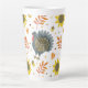Blaugraue Puten, goldene Sonnenblumen und Eichen, orangefarbene Herzen und Blätter vor weißem Hintergrund
