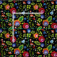 Schönes Volksmuster inspiriert von polnischer Volkskunst aus Lowicz, auf schwarzem Hintergrund.