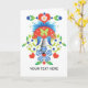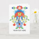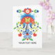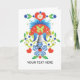 Stilisierte, Mod- und Folksy-Bilder auf einer allgegenwärtigen Grußkarte. Eine Vignette mit Volkssvögeln, Nelken, Gänseblümchen, Schmetterlingen und Herz für einen hübschen volkstümlichen Look auf schneeweißem Hintergrund. Passen Sie das Cover und das Interieur für Ihre individuelle Nachricht oder Stimmung an.