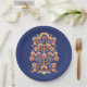 💙 🧡 Folklore mit gelben Blumen und Vögeln aus Lowicz (Region in Polen ). Navy Folklore Paper Plate. Niedlich als Geschenk für volkstümliche Menschen.
