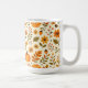 Farbenfrohe Kürbis, Beeren, Blume und Herbstblätter, die im Volkskunststil gehalten werden, bilden eine wunderschöne Tasse für den Erntedank.