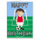 Un footballeur mignon masculin dans le kit uniforme du football, tenu devant un but du football du football avec un football à ses pieds. Vérifiez notre magasin des combinaisons uniformes de kit différent de couleur ou demandez un kit particulier de couleur.