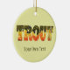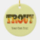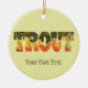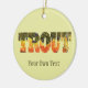 Ein wunderschöner hängender Feiertagsschmuck für den Typ oder Gal, der LIEBEN zum Fischen oder Lieben Ichthyologie oder die Lieben Forellen! Das Design zeigt das Wort "TROUT", gedruckt in den schönen Farben und Muster der Haut der Brook Trout, salvelinus fontinalis. Diese Fischkunst stammt aus einem original Aquarellbild von Mr. Trout Whiskers. Ideal für eine Zuhause, ein Büro, eine Kabine, eine Lodge, einen Laden oder ein Geschäft oder wo sonst jemand Forellen spricht. Schenkt ein einzigartiges Geschenk oder Geschenk für Ihren Lieblings-Fischer oder Fischer, Ichthyologe oder Fischliebhaber. Dieses gleiche Fischdesign gibt es auch bei Hunderten von anderen Fischereiartikeln bei TroutWhiskers - Aufkleber, Knöpfe und Magnete; Tasse, Kisten und Hüte; Plakate, Aufkleber und Ziergegenstände; Küchen-, Haus-, Kabine- und Lodge; Hüllen und Ärmel für Handys; T - Shirt, Sweatshirts, Hoodies und andere Bekleidung.... und viele und vieles mehr,!