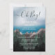 Waldbedeckte Berge mit Blick auf die tiefblaue Ozean Babydusche Einladung. Schöne Landschaftsmalerei mit Grüntönen, blau und braun. Kann für einen Jungen verwendet werden oder umtauscht zu sagen Oh Baby für eine neutrale Dusche.