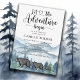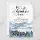 Lass das Abenteuer beginnt thematisch Aquarell Babydusche Einladung mit Wald- und Berglandschaft mit Kalligraphie Schrift Typografie mit Herz in der Mitte. Entsprechende Materialien und Party finden Sie in der vollständigen Suite unter: https://www.zazzle.com/collections/forest_adventure_baby_shower-119311648144421112
