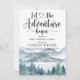 Lass das Abenteuer beginnen thematisch Aquarell Babydusche per E-Mail Einladung mit Wald- und Berglandschaft mit Kalligraphie Schrift Typografie mit Herz in der Mitte. Entsprechende Materialien und Party finden Sie in der vollständigen Suite unter: https://www.zazzle.com/collections/forest_adventure_baby_shower-119311648144421112