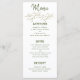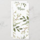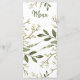 Fügen Sie die Greenery Wedding Menu Card für die Blätter des Waldes zu Ihrem Hochzeitstag Empfang Dining Zubehör hinzu. Entworfen mit weichen Blätter und Ästen in hellen und dunklen Farbtönen von Sommergrün auf weißem Hintergrund. Um Ihre persönlichen Wünsche zu erfüllen, legen Sie einfach Ihre Menüdetails in unsere Vorlage ein und ersetzen den Beispieltext. Es ist schnell und einfach.