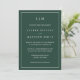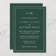 Einfache waldgrüne Hochzeitseinladung mit modernem und elegantem Design, oben mit zwei Buchstaben-Monogramm und Ihren Details umgeben von einer dünnen Grenze. Die Schriftart und Hintergrundfarben können durch Anklicken des Buttons "Anpassen" in beliebig viele Farben geändert werden. Ein elegantes und stilvolles Design, das sich ideal für ein minimalistisches Paar eignet.