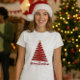 Forest Green T - Shirt mit Red Christmas Tree