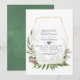 Probe im Grünen von Waldland mit wilden Kräutern, Farnen, Blätter und Eukalyptus mit goldenem geometrischem Rahmen, der auf Ihre Eventspezifikationen zugeschnitten ist.