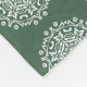 Dieses weiße Mandala liegt auf einem grünen Waldgrund. Die Farben sind friedlich. Teil der Sammlung Mola Mandala.