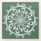 Dieses weiße Mandala liegt auf einem grünen Waldgrund. Die Farben sind friedlich. Teil der Payon Mandala Kollektion.