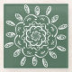 Dieses weiße Mandala liegt auf einem grünen Waldgrund. Die Farben sind friedlich. Teil der Sammlung Avanenn Mandala.